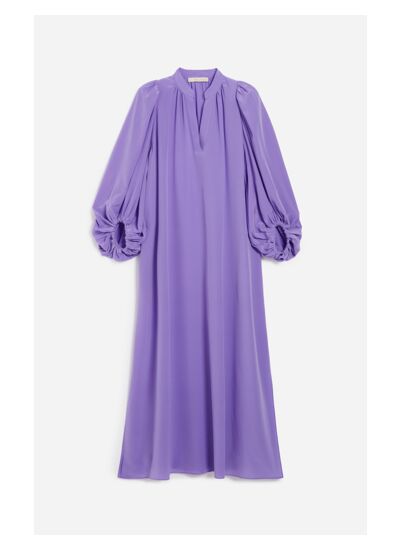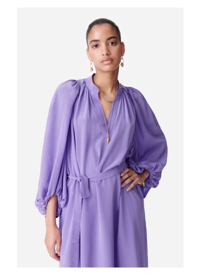 La robe Canessa, déclinée cette saison dans un violet éclatant, est l'incarnation de l'élégance et du confort. Sa coupe ample et fluide garantit une liberté de mouvement. Fendue sur les côtés, ce modèle offre une sensualité discrète. Les manches longues et bouffantes, agrémentées de fronces au niveau des poignets, ajoutent une dimension romantique et texturée à la silhouette. Confectionnée en soie, cette robe présente un drapé exceptionnel. Idéale pour vos sorties décontractées comme vos événements plus habillés, cette pièce intemporelle deviendra un incontournable de votre garde-robe. Le conseil de nos stylistes : remplacer sa ceinture amovible par une ceinture plus large.
