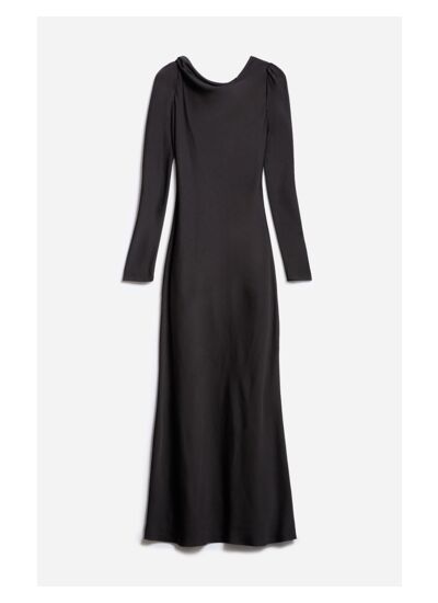 La robe Delle est parfaite pour vos plus belles soirées et occasions spéciales, attirant tous les regards. Épousant magnifiquement la silhouette, elle offre une allure élégante et raffinée. Son drapé en satin soyeux et brillant ajoute une touche de glamour, tandis que ses manches froncées apportent de la structure à ce style simple mais sophistiqué. Associez-la à une paires de talons ou de bottes.Robe longue en polyester soyeux. Coupe ajustée. Col drapé. Manches longues et ajustées froncées.