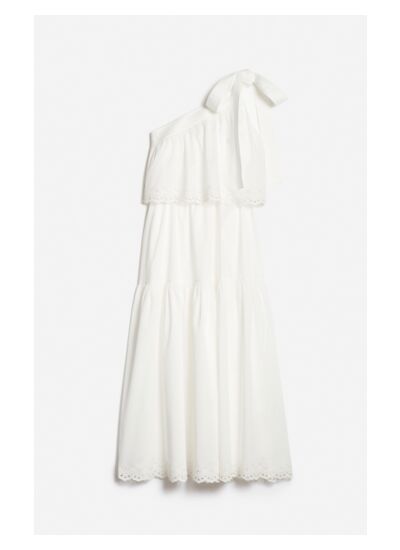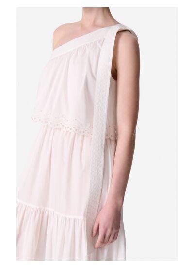 La robe Cora incarne une élégance aérienne grâce à sa coupe fluide et son décolleté asymétrique sublimé par un délicat noeud sur l'épaule. Son empiècement volanté orné de broderies anglaises ajoute une touche de romantisme, tandis que sa matière légère et sa longueur ample offrent une silhouette gracieuse et moderne. Idéale pour une cérémonie estivale ou une soirée en bord de mer, elle se marie parfaitement avec des sandales minimalistes et des accessoires raffinés pour un look chic et intemporel.