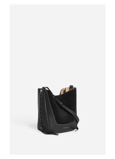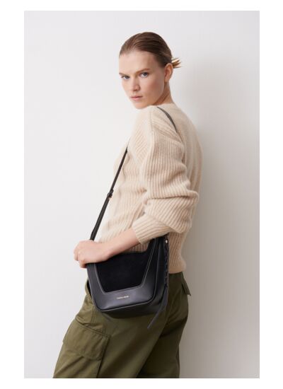 À la silhouette arrondie et épurée, ce petit modèle seau est pratique avec sa bandoulière ajustable à porter en cross body ou à l'épaule, selon vos envies. Avec son double cuir lisse associé à un cuir de veau plus souple, le sac seau Lou est le compagnon de ville idéal. Il se démarque notamment par son détail de lanières tressées sur les côtés.