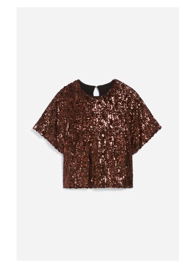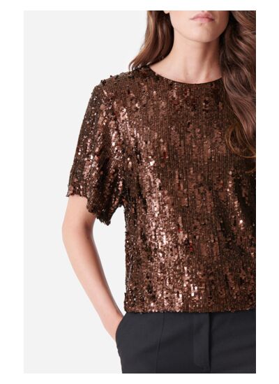 Le haut Bolero adopte la forme d'un t-shirt classique à col rond, mais se distingue par ses sequins dorés étincelants. Ce haut polyvalent est tout ce dont vous avez besoin pour briller à chaque événement. Associez-le à une jupe, un pantalon, un short, et bien plus encore pour créer des tenues variées à chaque occasion. Si vous êtes une fan inconditionnelle des paillettes et que vous souhaitez briller encore plus, associez-le à la jupe Dirma.