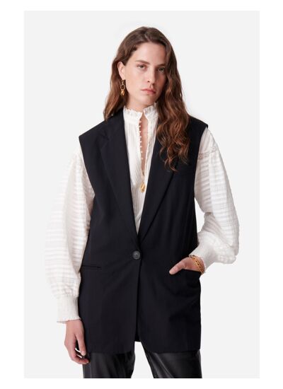 Sans manches, la veste Christen au col tailleur et à la ligne épurée garantit un style élégant et sans effort. Confectionnée en laine mélangée, c'est la pièce idéale à superposer par-dessus tout vos looks les plus simples. Son esprit blazer sans manches, ainsi que sa ceinture amovible subliment une chemise fluide, un jean et un t-shirt. On le porte également à même la peau pour un look de soirée audacieux ou sous un manteau si les températures l'exigent.
