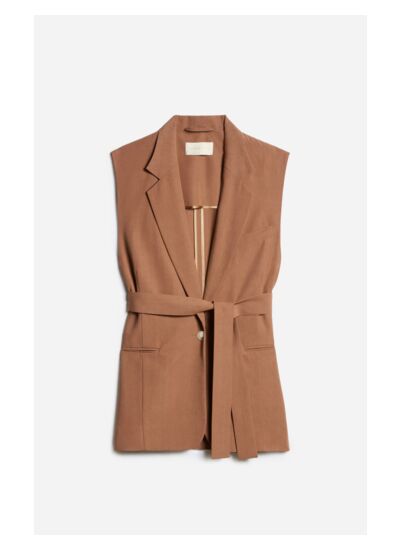 Sans manches, la veste Christen au col tailleur et à la ligne épurée garantit un style élégant et sans effort. Confectionnée en laine mélangée, c',est la pièce idéale à superposer par-dessus tout vos looks les plus simples. Son esprit blazer sans manches, ainsi que sa ceinture amovible subliment une chemise fluide, un jean et un t-shirt. On le porte également à même la peau pour un look de soirée audacieux ou sous un manteau si les températures l',exigent.