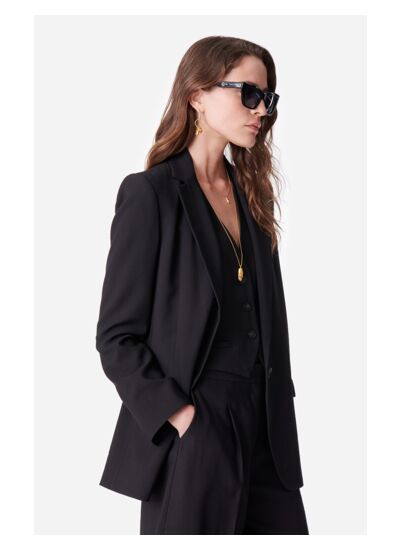 Grand classique de la maison, la veste Tilia se démarque par sa ligne inspirée d',un blazer masculin, retravaillée pour flatter les proportions féminines. Cet essentiel, confectionné dans un tissus léger, se porte cette saison avec la jupe à sequin Birma pour un look aussi festif que casual.