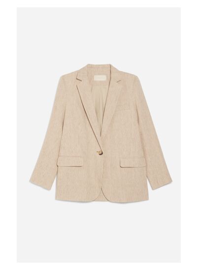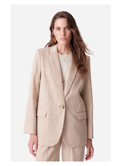 La veste Tilia est le blazer à la coupe intemporelle et indémodable. À la ligne masculine, on l'aime assortie avec vos looks plus féminin, sur une robe de soirée ou nos robes inspiration lingerie. Cette saison, ce modèle se décline avec de fines rayures marron clair. Portez-la avec le pantalon Cyrano assorti pour un total-look en lin et coton, parfait pour la transition de l'été à l'automne.