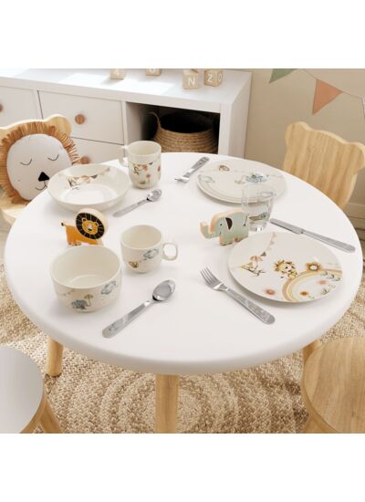 Bienvenue dans l’univers des enfants Boho de la maison Villeroy & Boch ! Toute la gamme de produits est conçue de manière ciblée pour répondre aux besoins des jeunes - d’une taille optimale, facile à utiliser. La vaisselle comprenant des assiettes, tasses et bols séduit par son design adapté aux enfants et fait de chaque repas une expérience amusante. La collection Boho Kids est un cadeau parfait pour différentes occasions comme les anniversaires, les baptêmes ou les fêtes comme Noël et Pâques. La série « Walk like an elephant » est ornée d’un adorable éléphant et de son copain le paresseux, dans les couleurs bleu et vert. Le set pour enfants comprend : une assiette plate, un bol, un mug. Il se distingue par des éléments décoratifs ludiques et a été conçu de manière particulièrement ergonomique pour les enfants pour leur offrir confort et sécurité. Il ne contient pas de substances nocives et peut être nettoyé sans crainte au lave-vaisselle. Le set est livré avec soin dans une jolie boîte cadeau en papier.