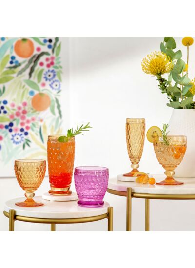 La collection Boston de Villeroy & Boch propose des verres de couleurs vives comme le rouge, le bleu, le vert, le rose, le gris mais aussi transparents, qui susciteront l’enthousiasme lors de chaque fête. Leurs motifs à facettes uniques créent un jeu de lumière fascinant qui fera briller chaque boisson de tout son éclat. Grâce à leur fabrication robuste et de haute qualité, ces verres en cristallin passent au lave-vaisselle, ce qui en fait le choix idéal pour un usage quotidien. Le design Smart Casual ne séduit pas seulement au quotidien, mais confère également un éclat brillant aux occasions festives. Grâce au motif tactile, la lumière se réfracte et se réfléchit de multiples façons, de sorte que chaque verre brille comme un diamant étincelant. Ce gobelet est parfait pour le thé chaud et d’autres boissons chaudes préparées avec de l’eau bouillante. Mais les boissons froides, comme le punch aux fruits et la limonade servis lors d’une fête dans le jardin, seront également superbes servies dans ce gobelet.