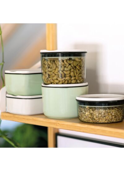 La collection ToGo&ToStay accompagnera de façon tendance toutes les personnes qui souhaitent profiter de la vie de façon saine et en respectant l’environnement. Que ce soit pour la préparation des repas, les courses de vrac en magasin ou comme boîte de conservation pour la maison, tu trouveras toujours la boîte qui te convient grâce aux différentes tailles. Le design cool dans des couleurs tendance n’est pas seulement élégant. Grâce à l’utilisation de Premium Porcelain et de verre robuste, ces articles sont neutres au goût, exempts de substances nocives et ne se décolorent pas. Opter pour la durabilité rime donc avec encore plus de plaisir. Depuis 1748, Villeroy & Boch est un créateur de tendances en matière de porcelaine belle et fonctionnelle. Avec ses dimensions de 20 x 13 x 7,5 cm, cette boîte à repas est idéale pour transporter des gratins préparés à l’avance ou d’autres plats principaux. La Premium Porcelain de haute qualité combinée au joint en silicone permet également de conserver des aliments ou de faire des achats sans déchets, par exemple pour du fromage et de la charcuterie.  La boîte et le silicone conviennent au lave-vaisselle, la boîte convient de plus au four à micro-ondes et au four traditionnel.