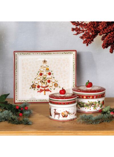 La collection façonnée avec le souci du détail Winter Bakery Delight donne envie de déguster des étoiles à la cannelle, du lait de poule et des pommes cuites. Cette vaisselle à la décoration festive fait de Noël une expérience pleine de style pour toute la famille. Depuis 1748, Villeroy & Boch est synonyme d‘une porcelaine tout simplement magnifique de la plus haute qualité. Pour les gourmands, la petite boîte à biscuits de Noël est parfaite. Vous pourrez y cacher de délicieux gâteaux faits maison qui resteront longtemps frais. Article fabriqué en Premium Porcelain de haute qualité. Pour le nettoyage, essuyer simplement avec un chiffon humide. Article livré dans un emballage cadeau de Noël.