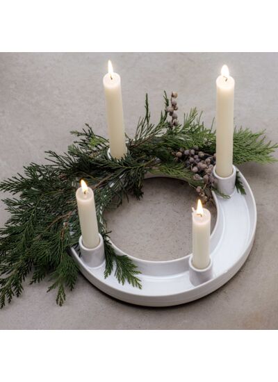 Symbole de Noël, ce bougeoir design répandra l’esprit des fêtes. Disposez-le sur une commode ou un buffet et accompagnez-le d’un photophore blanc ainsi que de quelques éléments de décoration contemporaine. Pensez également à placer cette couronne de l’avent au milieu de votre table pour vos repas festifs en famille. Elle trônera fièrement au centre, entourée de délicieux mets de fêtes, tous servis dans de belles pièces de vaisselle de la collection Winter Glow, à découvrir sans attendre ! Plongez dans la magie d’un Noël blanc ! Enchantez votre intérieur avec une couronne de l’avent d’inspiration nordique. Cette décoration de Noël ronde en porcelaine haut de gamme est ornée de 4 bougies blanches. Sobre, élégante, douce, elle incarne la beauté et la pureté de l’hiver.