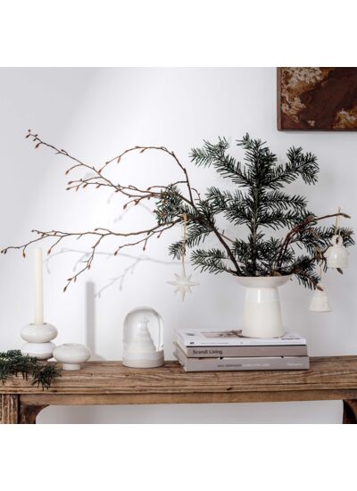 Noël approche ? Il est grand temps de préparer le sapin ! Rassemblez votre famille et plongez dans l’esprit des fêtes en habillant votre arbre de magnifiques décorations. Cette année, il sera vêtu de blanc : ornements clairs en porcelaine, boules de Noël blanches, suspensions dans les tons crème… Un vent nouveau souffle sur le Roi de Noël ! Cette décoration d’inspiration nordique invite la fraîcheur hivernale dans nos intérieurs. Le blanc offre une note de pureté, de féerie et évoque un paysage enneigé. Laissez libre cours à votre créativité et accessoirisez votre sapin avec des pièces blanches magiques, telles que la délicate étoile de Noël. Avec son émail en relief, elle semble enveloppée d’un manteau de neige. Ajoutez ensuite d’autres ornements modernes de style scandinave pour un résultat élégant.