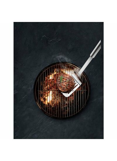 Même la chaleur la plus élevée des barbecues au charbon de bois ou au gaz n'impressionne pas du tout la spatule à barbecue en Cromargan® durable : acier inoxydable 18/10, bien au contraire. Grâce à sa surface d'appui extra-large, saisir, retourner et retirer la viande, le poisson ou les légumes en toute sécurité et avec précision est un jeu d'enfant. Le long manche garantit que vos mains restent hors de la zone de chaleur la plus élevée, et les larges fentes dans la surface de support permettent à l'excès de graisse de s'écouler rapidement. La spatule à griller est également étanche, peut être mise au lave-vaisselle pour le nettoyage et dispose d'un œillet pratique pour l'accrocher à un crochet afin de gagner de la place.