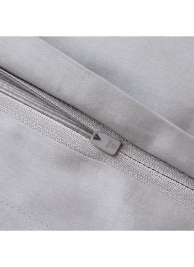Ce spectaculaire effet de rayures, dans de multiples nuances minérales, d'intensités variables, s'illumine de passages craie. Le motif se déroule sur toute la hauteur, tandis qu'au revers, un uni gris chaud sublime le tout. Le satin de coton 120 fils utilisé, à la douceur incomparable, rend hommage à la richesse du dessin.