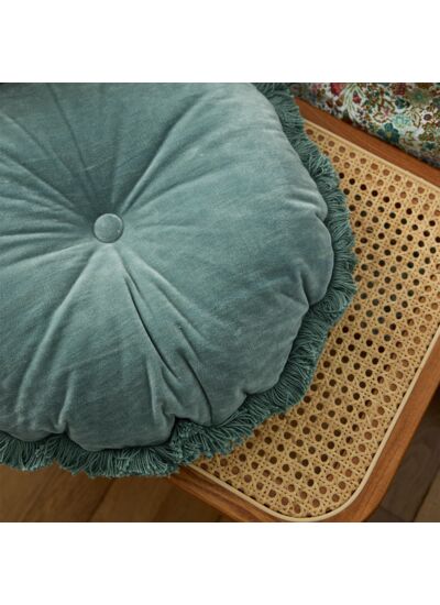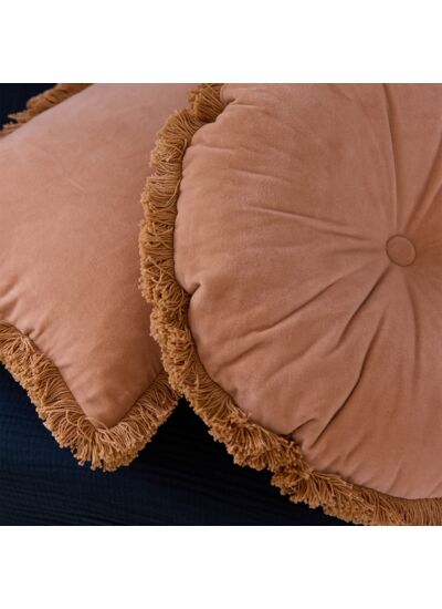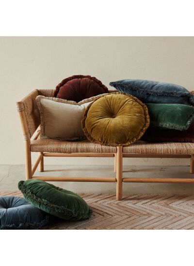 Le coussin Romulus, avec sa forme ronde originale et ses franges soignées, apporte une touche distinctive et élégante à votre intérieur. Son velours luxueux invite au confort et à la détente, faisant de lui un choix idéal pour ajouter une note de caractère et de douceur à n'importe quelle pièce.
