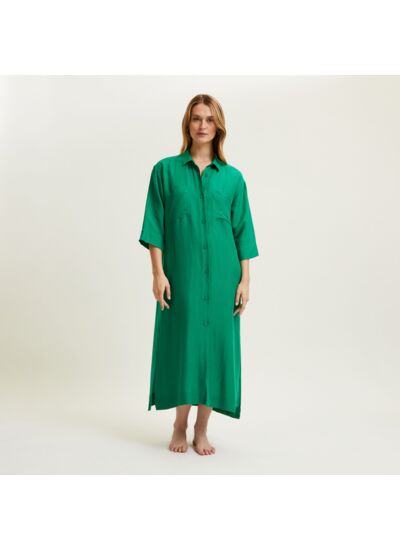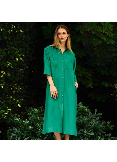 Robe longue boutonnée en popeline de viscose lin
