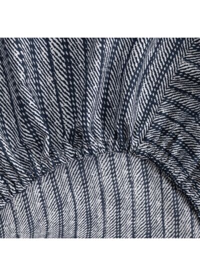 On craque pour cette lumineuse percale de coton, son jardin extraordinaire au recto, et son imprimé bleu indigo au verso, façon tissage. Les teintes riches du dessin s'associent avec les nombreuses nuances des parures unies de la marque. L'ensemble rayonne d'une harmonie toute naturelle.