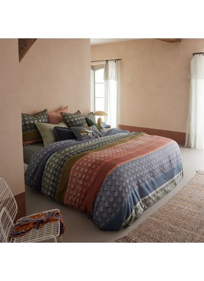Imprimé avec la réversibilité de la housse de couette sur satin lavé 80 fils/cm² - 100% coton