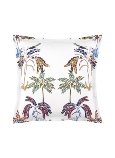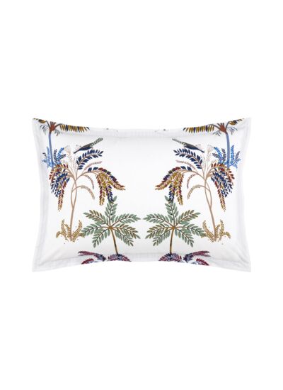 On craque pour cette lumineuse percale de coton, son jardin extraordinaire au recto, et son imprimé bleu indigo au verso, façon tissage. Les teintes riches du dessin s'associent avec les nombreuses nuances des parures unies de la marque. L'ensemble rayonne d'une harmonie toute naturelle.