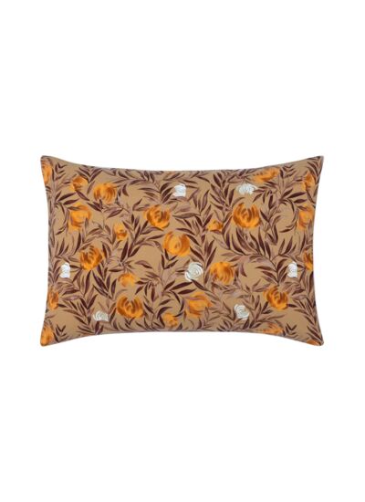 Des fleurs rayonnent, leurs pétales scintillent, et des feuilles se joignent à la fête. Les teintes sont lumineuses mais doucement patinées par le tissage de son satin lavé. Au dos, un imprimé Cumin, quadrillé de lignes blanches, pour un effet lin très mode.