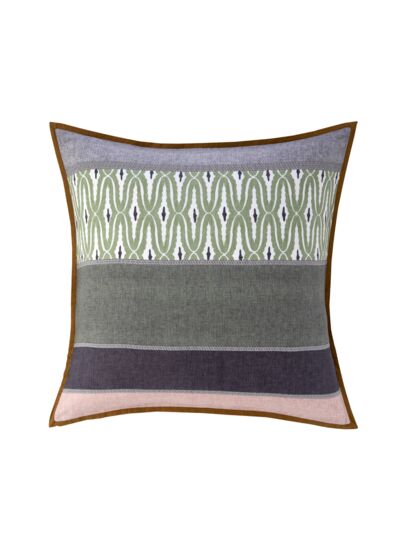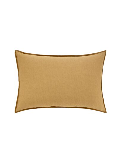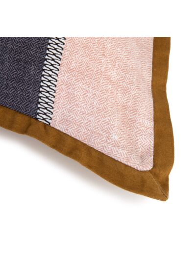 Taie à motif placé avec une finition biais plat inséré mordoré.
