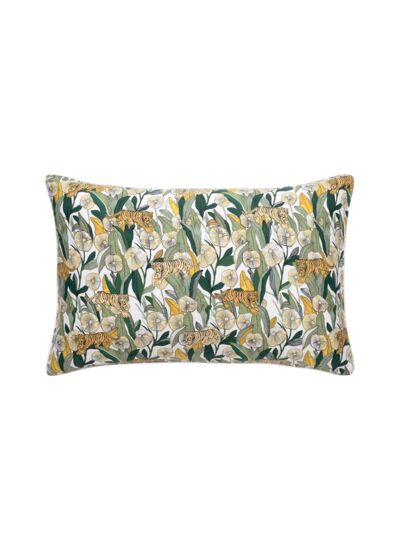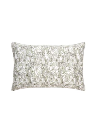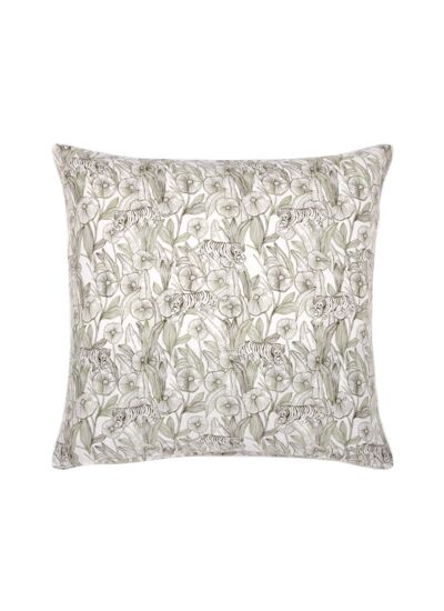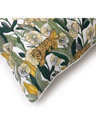 Il était une fois... MR KHAN, un tigre audacieux, caché au coeur d'une jungle luxuriante et fantaisiste. Au verso de cette parure en satin lavé pleine de vitalité, un motif façon << trait de crayon >> kaki, écrit un récit plus calme.