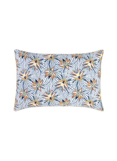 Un motif bleu azur d'exception, végétal aquatique à la fois pour naviguer seul, en amoureux ou voyager en famille. En Posidonie les nuits sont légères et soyeuses, à la lumière du satin lavé jaune raphia au revers.
