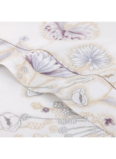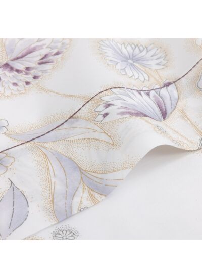 Le modèle Givre se distingue par son motif subtil, évoquant des fleurs hivernales rendues iridescentes sous l'éclat de la lumière de l'hiver. Cette interprétation poétique de la flore s'inscrit comme une signature emblématique du style Yves Delorme.