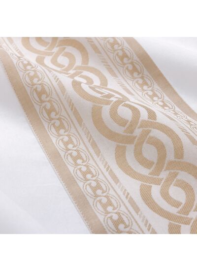C'est dans le cadre d'une collaboration avec la ville de Versailles que luxe, culture et créativité sont mis à l'honneur avec des créations signatures. Le modèle Joyau incarne le luxe intemporel du style français. Une architecture de frises décoratives est interprétée sur des bandes damassées et appliquées sur satin de coton blanc.