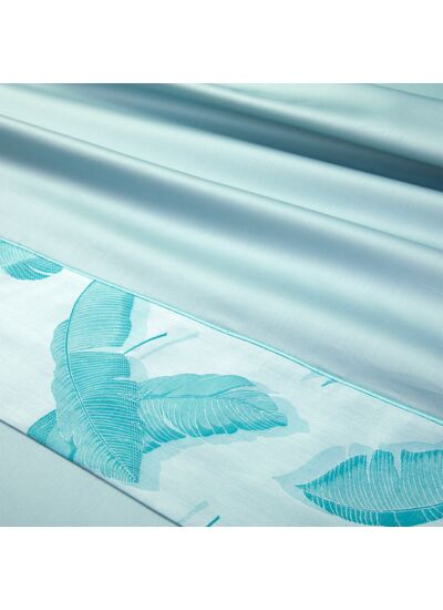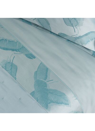 Depuis la perspective des dunes sablées d'un Cap qui avance doucement vers les vagues, la mer teinte l'horizon de turquoise. Ce jacquard mode de la saison est écrit en lumière scintillante, laissant apparaître les petites pousses de feuillage découpées sur leurs tiges fragiles.