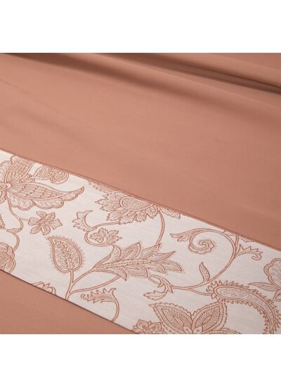 Jacquard décoratif rappelant la richesse des brocarts de soie ornant les intérieurs de palais et le faste de leur décor. La couleur Sienna donne des reflets sophistiqués au modèle, comme l'expression du temps qui a magnifié les tons, révélé des détails, et réinventé les motifs pour donner aux textiles les émotions d'une modernité sensible.
