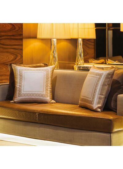 La housse de coussin Joyau, en collaboration avec la ville de Versailles, symbolise le luxe et la créativité. Elle reflète l'élégance intemporelle et le raffinement caractéristiques du style français, à travers un design qui réinterprète majestueusement les motifs architecturaux classiques.