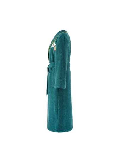 Inspiré par la grande tradition du tissage des tapisseries qui ornaient autrefois les murs des châteaux, le peignoir de bain Panorama célèbre avec élégance le style "mille fleurs", reflétant une esthétique riche et détaillée.