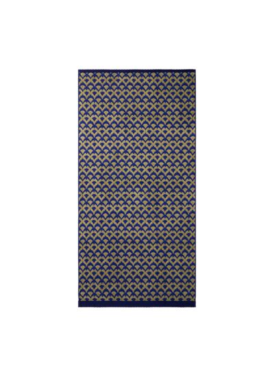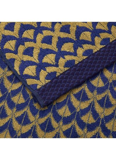 Chercher l'ombre dans les jardins et trouver le ciel à travers les feuillages baignés de la lumière dorée du soleil. Canopée est un modèle contemporain présentant des nuances de bleu Klein et de bronze inspiré du style Art Déco.