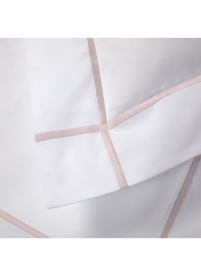 Athéna, la déesse de l'artisanat et du tissage, incarne l'élégance du blanc. Sa fraîcheur, sa résistance, sa finesse et son aspect mat garantissent une qualité haut de gamme. La pureté graphique d'un bourdon droit de couleur encadre délicatement les taies d'oreiller à volants dans un geste élégant de lignes entrecroisées.