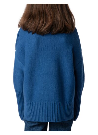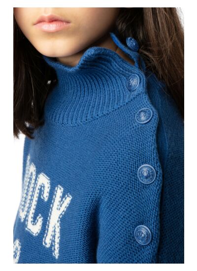 Détail : message intarsia et brodé "Rock & Roll", signature ZV pointelle.