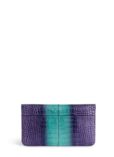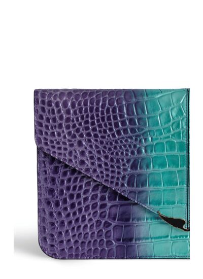 Affirmez votre style avec la pochette Borderline, un accessoire audacieux qui capte la lumière et les regards. Son cuir métallisé embossé effet croco en dégradé violet apporte une touche unique et sophistiquée à toutes vos tenues.