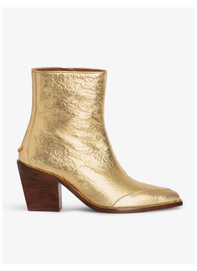 Affirmez votre style avec les Cara Boots Wrinkled Metal, des bottines audacieuses qui captivent par leur éclat doré et leur design unique. Alliez modernité et élégance avec ce modèle signé Zadig&Voltaire, pensé pour sublimer chaque pas.
