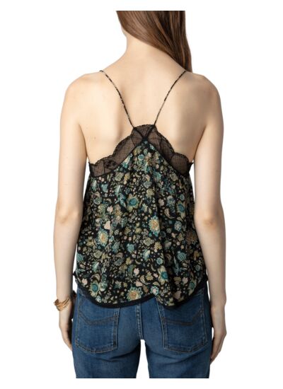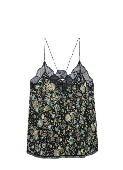 100% soie pour une qualité et un confort exceptionnels. Bords en dentelle délicate, strass incrustés. Bretelles fines non réglables. Marque : Zadig&Voltaire.