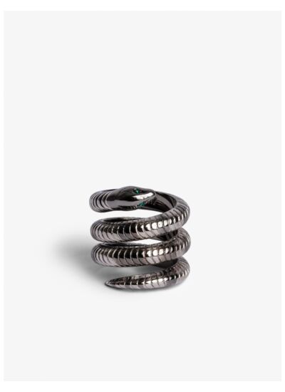 Fabriquée à partir de 75 % de laiton recyclé, cette bague reflète un engagement responsable sans compromis sur l’esthétique. Les cristaux verts qui ornent les yeux du serpent ajoutent une touche précieuse, tandis que la marque Zadig&Voltaire garantit un savoir-faire reconnu. À noter, les chainettes ne sont pas incluses dans cette composition recyclée.