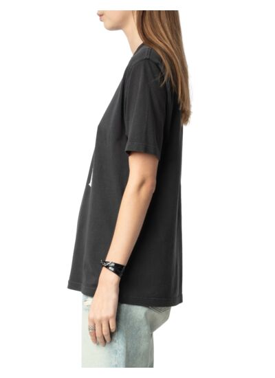 Réponse : La composition exacte n’est pas précisée, mais il s’agit d’un jersey de qualité signé Zadig&Voltaire, garantissant confort et durabilité.