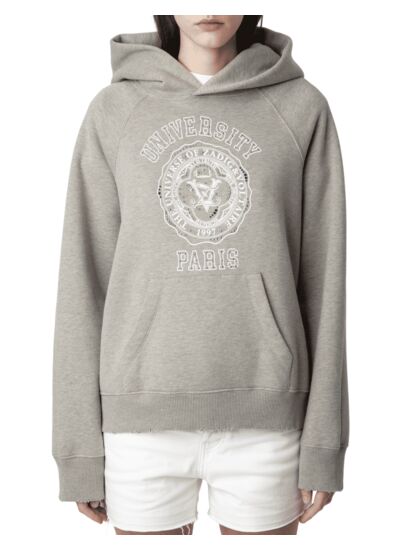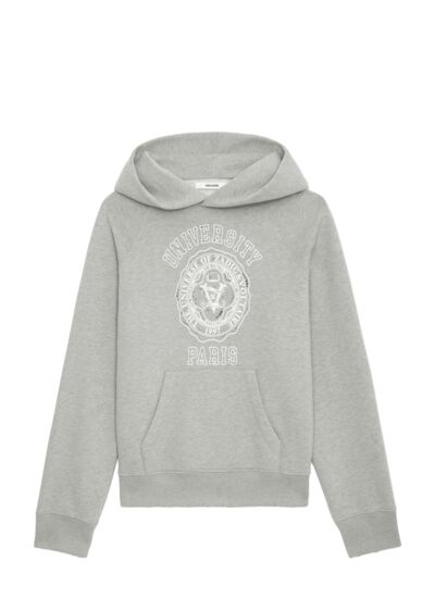 Affichez un style urbain et sophistiqué avec le sweatshirt à capuche Trellis gris, signé Zadig&Voltaire. Son motif University en strass bicolores apporte une touche d’éclat subtile et moderne à votre look casual.