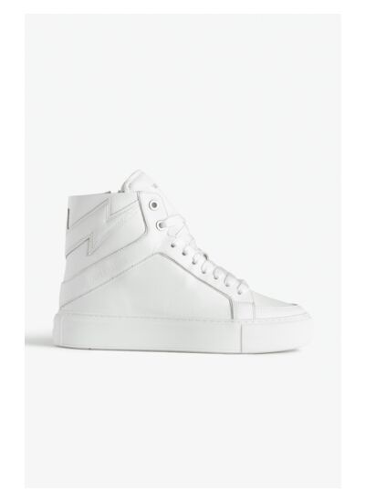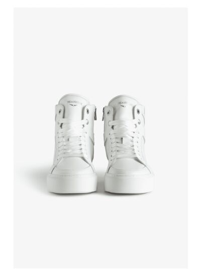 Baskets hautes en cuir lisse blanc pour femme, fermeture lacée et zippée, semelle chunky compensée intérieure de 2,7 cm signée Zadig&Voltaire, fabrication portugaise.