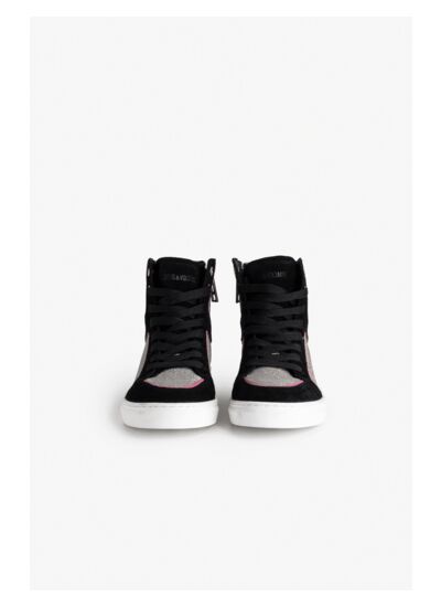 Conçues en toile pailletée et velours noir, ces sneakers captent la lumière tout en offrant une texture riche et sophistiquée. L’éclair à motif léopard apporte une touche sauvage et contemporaine, parfaite pour une fille qui ose affirmer sa personnalité. Leur design montante assure maintien et allure, idéales pour compléter un look urbain ou décontracté avec une note précieuse.
