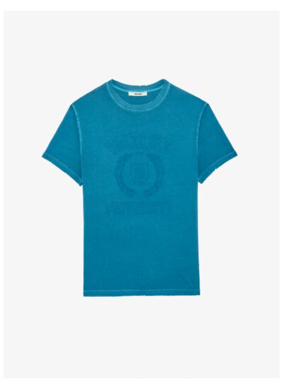 Affichez un style authentique et engagé avec le T-shirt Jimmy HC Blason University, un essentiel casual revisité pour l’homme moderne. Sa teinte bleu Curacao et son imprimé blason Zadig&Voltaire University incarnent une allure à la fois décontractée et distinctive.