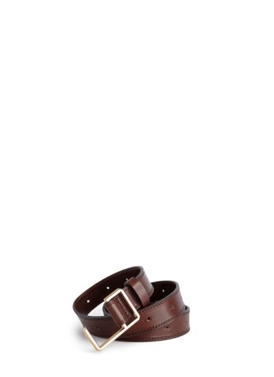 Largeur de 2,5 cm, cuir tanné végétal Bonny marron, boucle fine en métal doré, modèle fabriqué en France par Zadig&Voltaire.