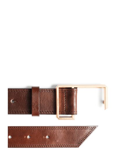 Fabriquée en France, cette ceinture en cuir végétal marron Bonnyfemme mesure 35 mm de large. Elle est équipée d’une boucle dorée en forme de C et offre un système de réglage facile pour un ajustement parfait.