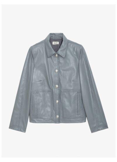 Matière : cuir lisse. Fermeture : boutons pression loup argentés. Poches : 2 latérales, 2 intérieures. Col : chemise. Manches longues avec liquettes. Découpes et fentes arrondies. Doublure intérieure ton sur ton. Marque : Zadig&Voltaire.