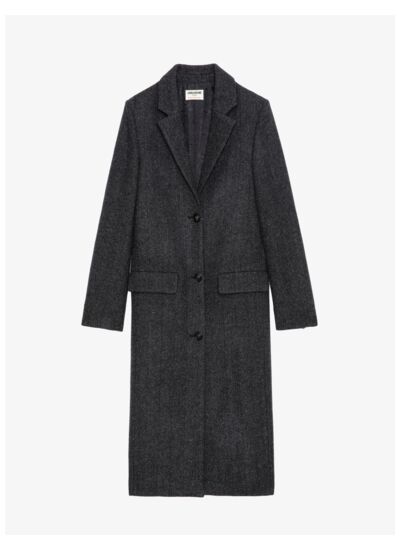 Composition : laine mélangée. Marque : Zadig&Voltaire. Fermeture : trois boutons. Poches : deux poches latérales à rabat, une poche intérieure. Col : tailleur. Détails : épaulettes, manches longues avec poignets cassés, intérieur satiné jacquard.
