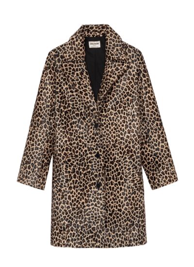 100% cuir de veau, imprimé léopard naturel. Col à revers, fermeture boutonnée, manches longues. Poches latérales pratiques. Marque Zadig&Voltaire.