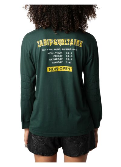 100 % coton biologique, col rond côtelé, manches longues avec coudes rembourrés, bords côtelés effet usé. Fabriqué au Portugal.